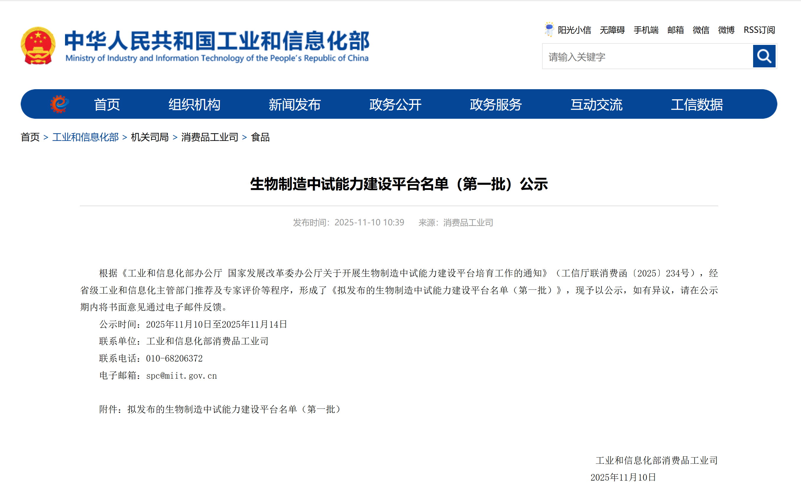 2025年11月10日,國(guó)家工業(yè)和信息化部官方網(wǎng)站正式發(fā)布了《生物制造中試能力建設(shè)平臺(tái)名單(第一批)公示通知》。嘉必優(yōu)生物技術(shù)(武漢)股份有限公司憑借其在生物制造領(lǐng)域深厚的技術(shù)積累、完備的中試基礎(chǔ)設(shè)施以及卓越的產(chǎn)業(yè)化應(yīng)用能力,成功入選該名單。這是國(guó)家對(duì)嘉必優(yōu)在中試平臺(tái)建設(shè)與生物制造創(chuàng)新能力方面的高度認(rèn)可,標(biāo)志著公司在該領(lǐng)域的領(lǐng)先地位得到了進(jìn)一步鞏固。